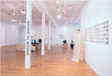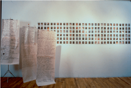 Station to Station, group exhibition at Artists Space. Curated by Tony Oursler and Gary Simmons. Karaoke Project, polaroids, video, and newsprint "cue card" drawings.