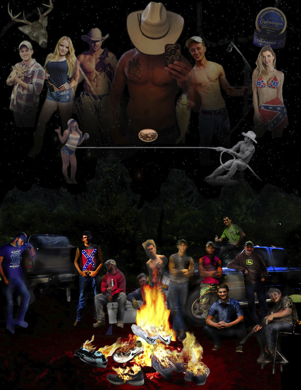 Photo-collage: Use Photoshop and images sourced online to create a dynamic remixed image: Identify one thing you most hate about American culture at this moment in time, and make a collage poster. Use image content directly connected to thething you hate or are commenting on to subvert that imagery and claim it as your own.