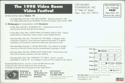 The 1998 Video Room Video Festival, at Galapagos, Brooklyn New York.
