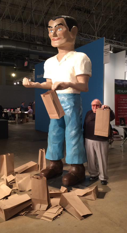 Wigberto Serpa is a large scale sculpture about quality, craftsmanship and production/consumption of individual labor. It is inspired by the Muffler Man roadside sculptures and the spirit of labor monuments. Wigberto Serpa was on view at the 2016 SOFA Expo in Chicago.